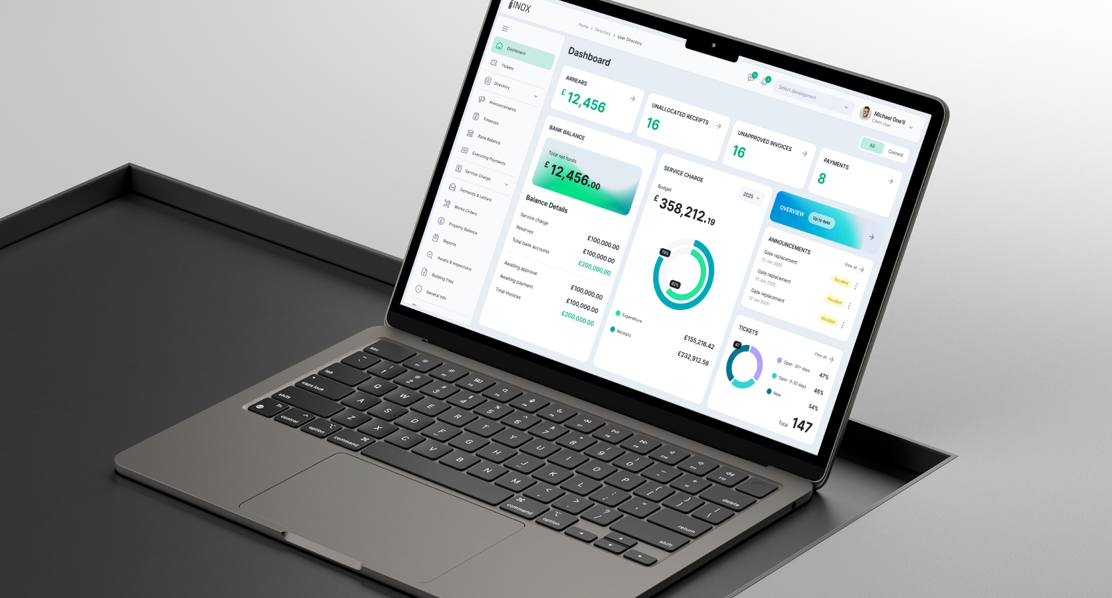 What makes the difference is design. Every workflow in Inox has been built around how property managers and accountants actually work, rather than around how a software architect imagined they might work. One-click invoice approval is genuinely one click — not one click followed by three confirmation screens and a dropdown menu. The simple ticket management system creates and assigns a ticket in seconds, not minutes. The easy leaseholder portal requires no instruction for residents to navigate — they can report an issue, check its status, and review their service charge account without reading a help document.